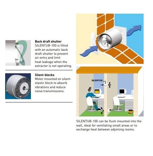 • Αξονικός εξαεριστήρας αθόρυβης λειτουργίας σχεδιασμένος για τοποθέτηση χωνευτά στον τοίχο.