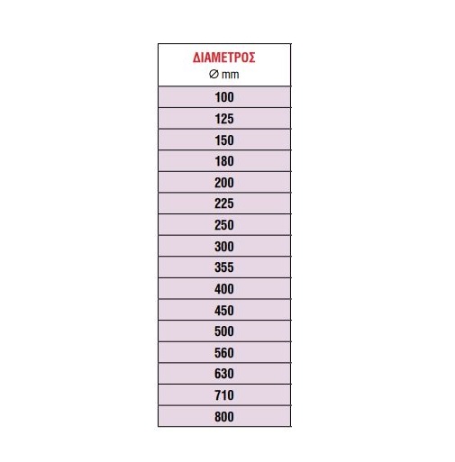 - Σε διαμέτρους από Φ100mm έως Φ800mm.